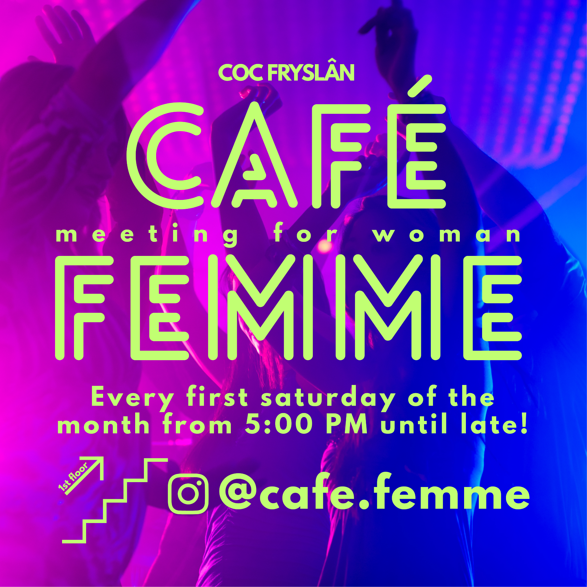 Bij Café Femme draait alles om jezelf kunnen zijn. We creëren een veilige, toegankelijke omgeving waar je nieuwe mensen kunt ontmoeten, gesprekken kunt voeren of gewoon kunt genieten van een ontspannen avond. Of je nu voor het eerst aansluit of al bekend bent met de groep: je bent altijd welkom.